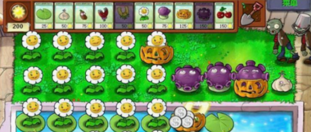 2. 水面关卡中,在荷叶上种植墙果可有效克制潜水僵尸;