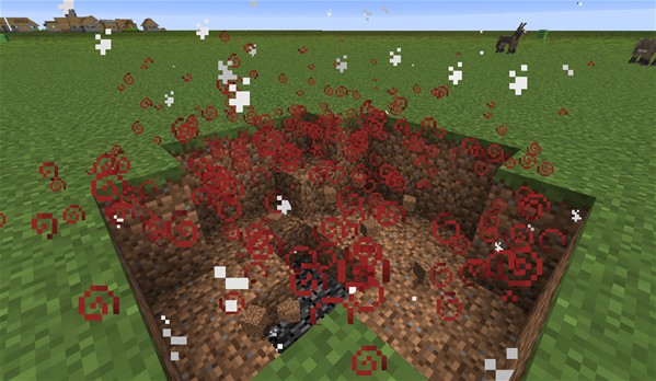 带有力量效果的爬行者爆炸之后留下的带有力量药水滞留效果的爆炸坑洞。