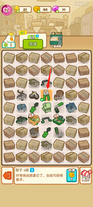 打开随身道具箱,查找对应素材并拖入合成栏,轻松完成道具制作。