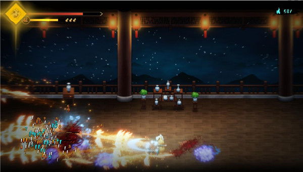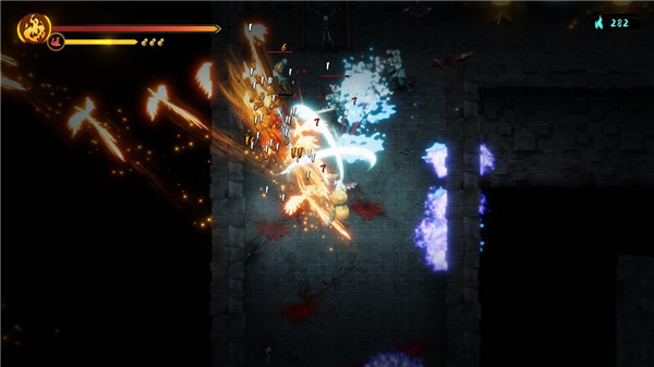 玩家扮演的侠士狴犴除了持有标准近战用的长剑外,身上还悬浮着七把可以用于发射的飞剑。在初始的“七剑修罗”模组下,这些飞剑在发射出去后,会扎在敌人身体内,击败敌人后则会散落在场景当中,还可以通过接触来将其回收。