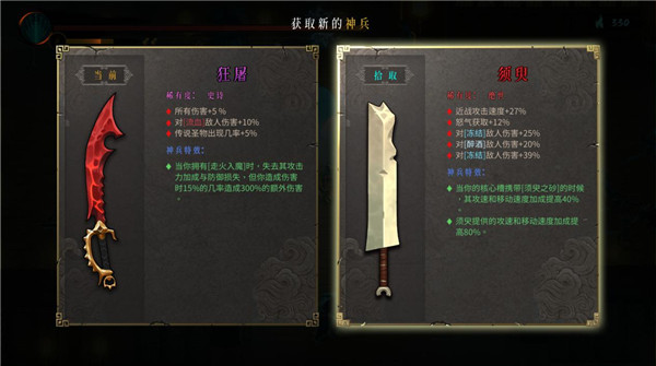 如果说圣物就是传统意义上的装备,那么这部分的烦恼,在《暖雪》中很少存在,需要赌的就基本只剩下武器和传说级的宗派秘籍了。而在游戏当中,武器部件在流程里还可以获得同品级免费重铸的机会,build构筑的难度是停留在相当舒适的区间的。