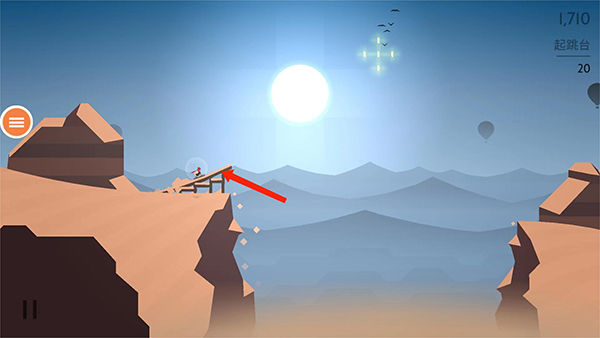 5、俯冲陡坡时长按右屏,角色将旋身腾空——后空翻不仅是得分手段,更会扰动气流,短暂改变沿途沙尘轨迹,