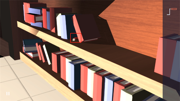 6、沿楼梯登上二楼前厅,右侧高处书架第三层夹缝中藏有一块强磁铁;
