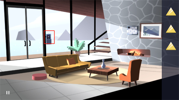 1、进入初始房间后,点击左下角花瓶,触发机关并拾取隐藏其后的金色钥匙;