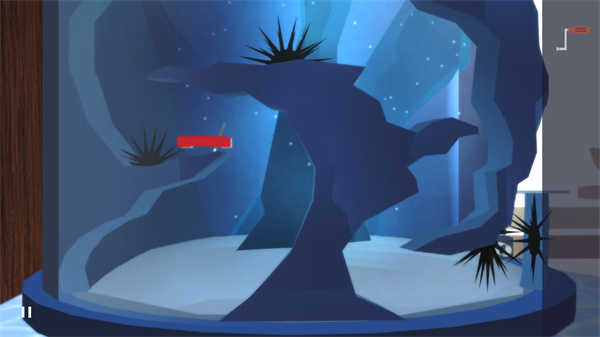 7、返回一楼客厅,将磁铁贴近鱼缸右下角排水口,吸附并导引水底钥匙浮至可拾取位置;