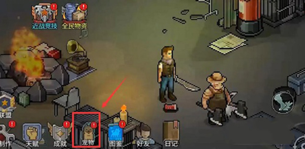 1、进入像素危城主界面,点击底部导航栏【宠物】入口;