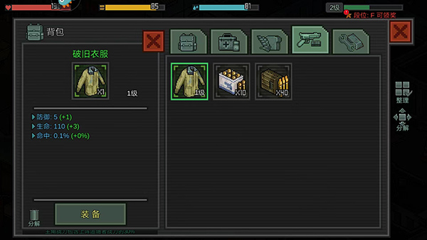 3、主角背负沉重过往,在像素光影间穿行于断壁残垣,用弓箭、霰弹枪与自制燃烧瓶,在绝境中刻下生存印记;