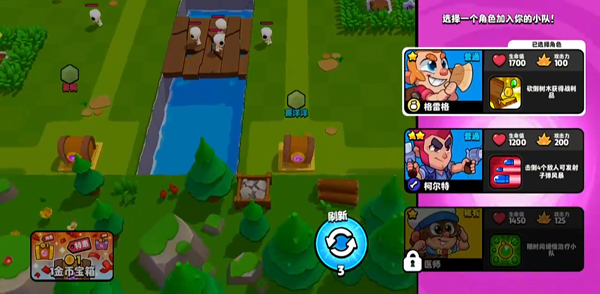 支持本地/在线双人组队,共同迎战其余三支AI或真人小队。宝石结算按队伍共享,失败方仍可获得基础参与奖励。同步开放表情互动、任务追踪、外观定制及段位排位系统,所有角色技能均可深度养成;