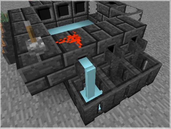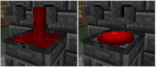 浇筑台、浇筑盆中形成的成品也可以使用漏斗装走,冶炼厂填料仓也支持漏斗填入原料,也就是说建造一个全自动的冶炼厂是可能的。冶炼厂的龙头是可以使用红石触发的:
