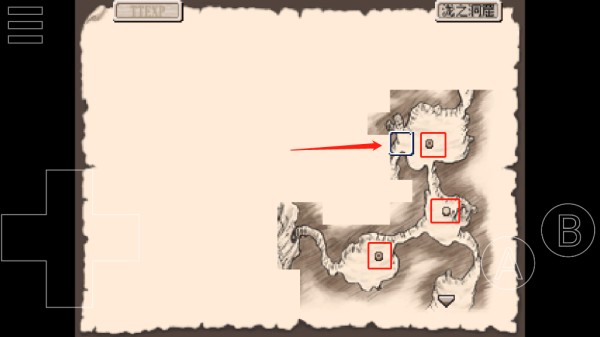 7、若需中止探险返回城镇,只需将光标移至画面左下角“倒三角”标识处即可触发撤离。