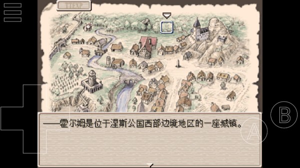 看似粗粝的手绘地图实则暗藏巧思:每个地点命名考究、图标特征鲜明,酒馆暖光、药店药香、神殿肃穆……视觉符号与氛围高度统一,让玩家过目不忘,仿佛真正踏足过这座城的街巷与地底。