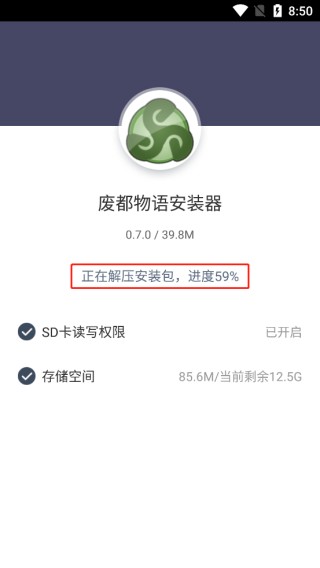 1、启动《废都物语》安卓中文版安装包,完成解压流程。