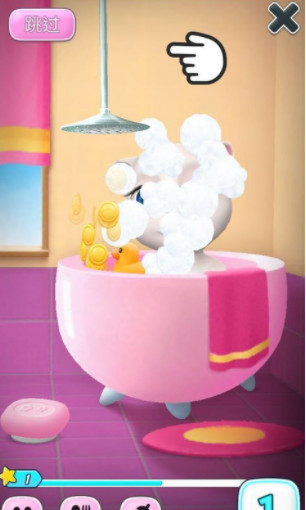 洗澡功能,包含泡泡浴、淋浴等多种清洁方式,还能使用香氛增加趣味性。