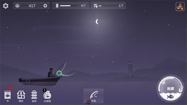 2、抵达目标地点后,点击投下鱼钩开始垂钓。